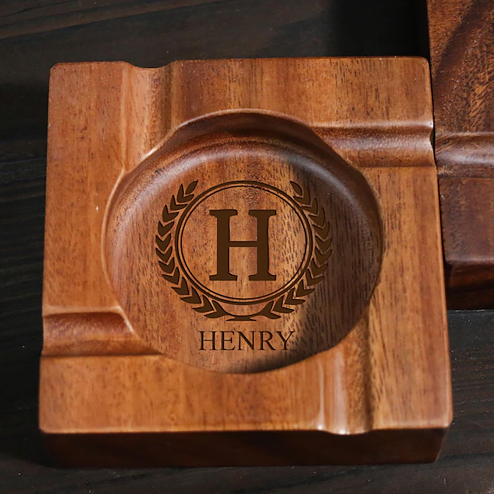 This wooden ashtray is a standout addition to any cigar lounge or man cave with custom engravings of your choice.
